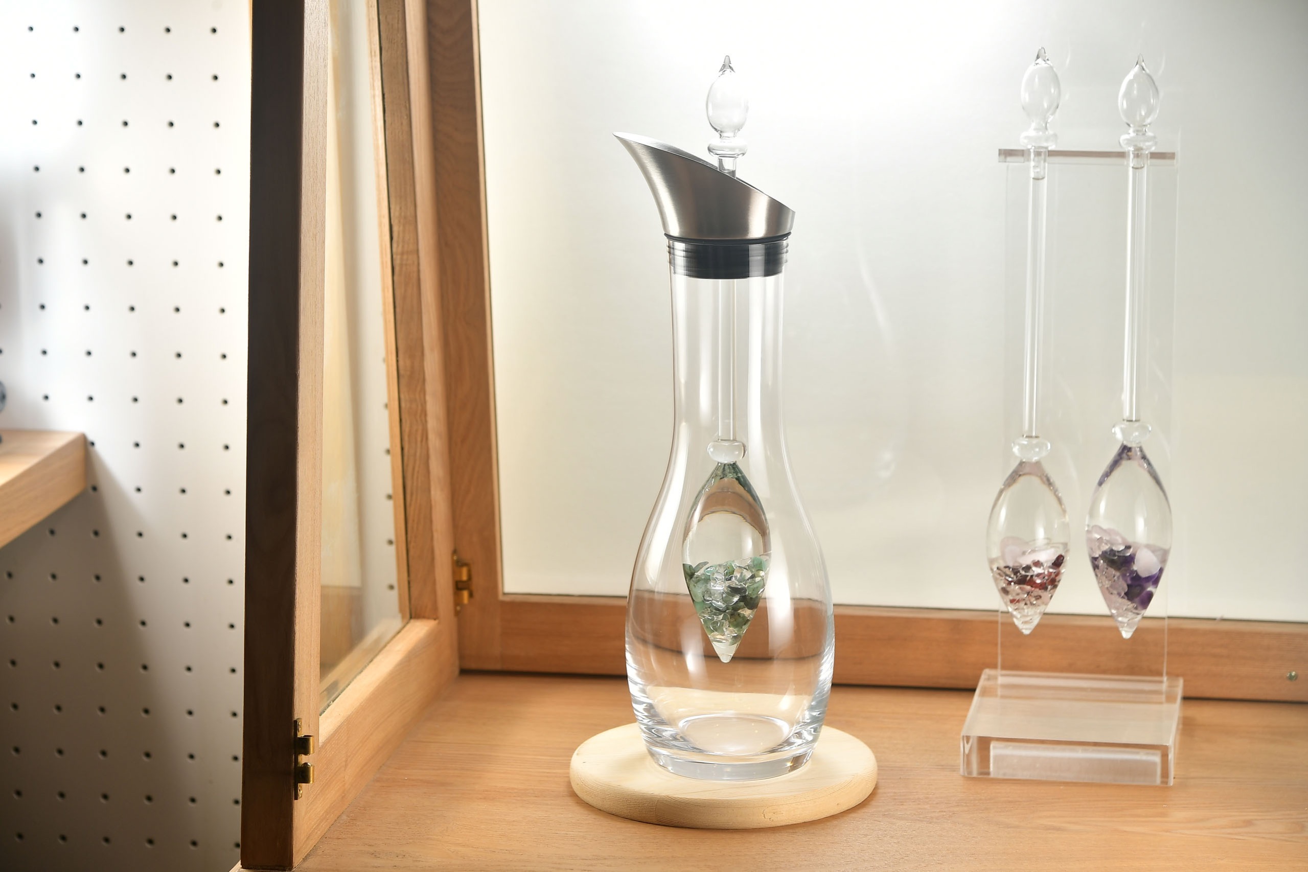 當然,不少人對天然寶石的力量抱懷疑態度,目前也未有實際的報告去肯定水晶的特殊力量,但已經有科學家研究指出,運用浸泡過水晶的能量水來灌溉鮮花,比用普通自來水可以令鮮花存活多數天。VitaJuwel寶石能量水樽於奧地利以無鉛水晶玻璃人手製造,樽內的寶石內膽完全密封,晶石不會直接接觸飲用水,避免碎屑物質溶解到水中。水樽內晶石釋放出的震動頻律,可以改善水質結構、改變pH值與氧份含量等特質已得到實驗證明,而一般飲用水放在寶石能量水樽內七至十分鐘,口感上確實會變得更圓潤更滑,像是天然礦泉水的質感。