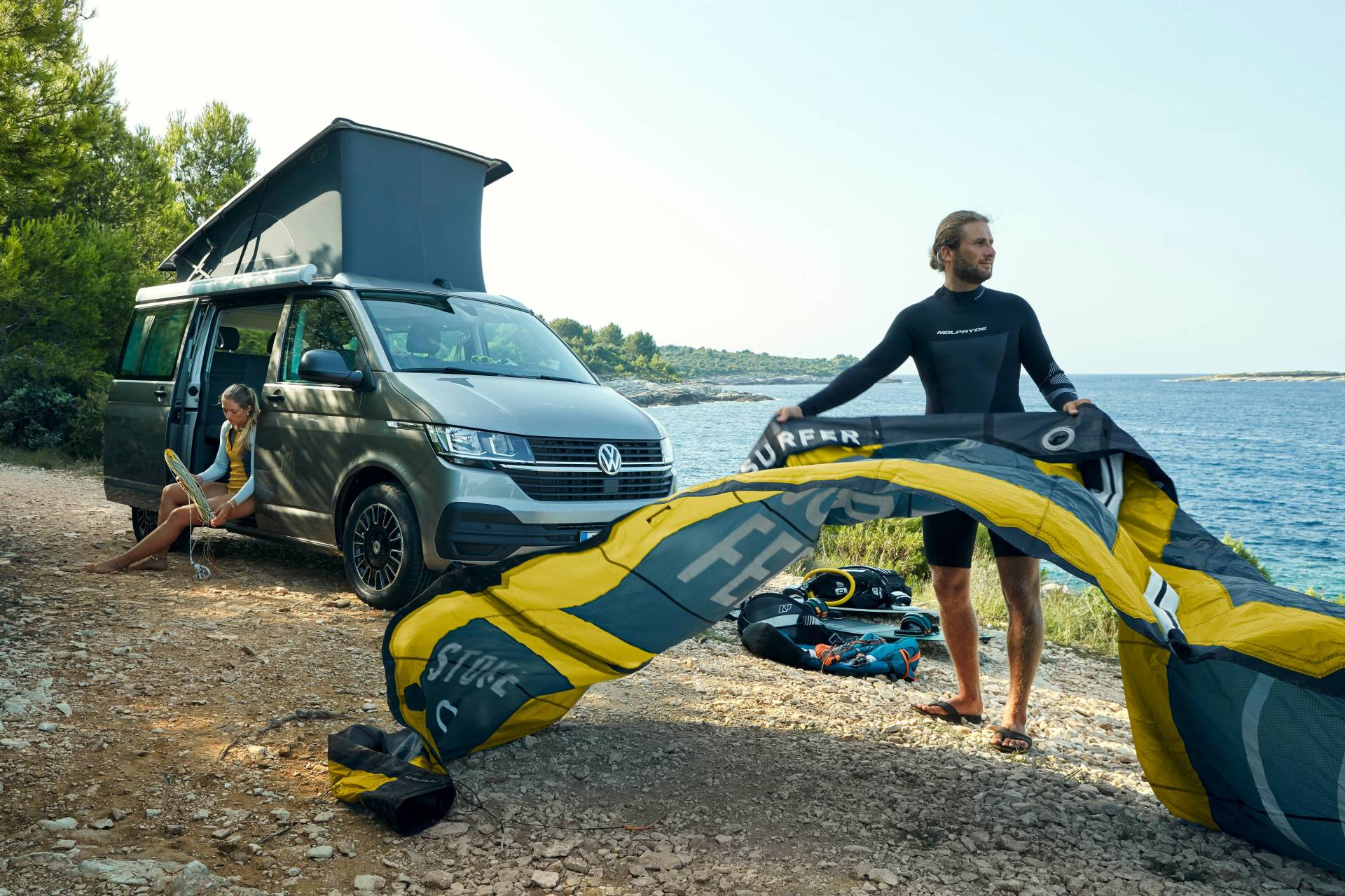 迷你廚房隱藏在B柱和C柱之間的側板上,煮食時只需將它拉起滑出便可,以不銹鋼製成迷你廚房,左邊設有明火煮食爐,右邊有工作檯方便處理食物,下方則有開放式儲物空間及存放1.8公斤石油氣罐瓶的密封空間。另外右側趟門藏有摺枱,車尾有摺凳,車頂加入帆布製成的彈出式露營帳篷,足以應付兩、三日短途旅程。