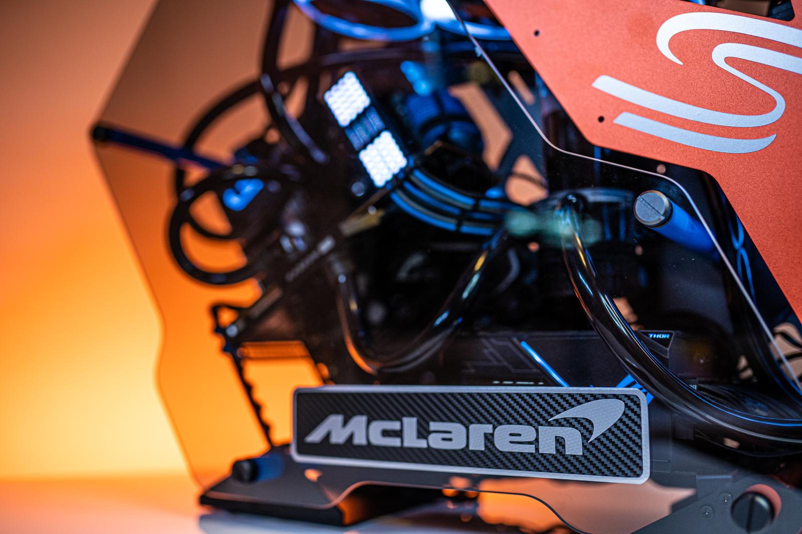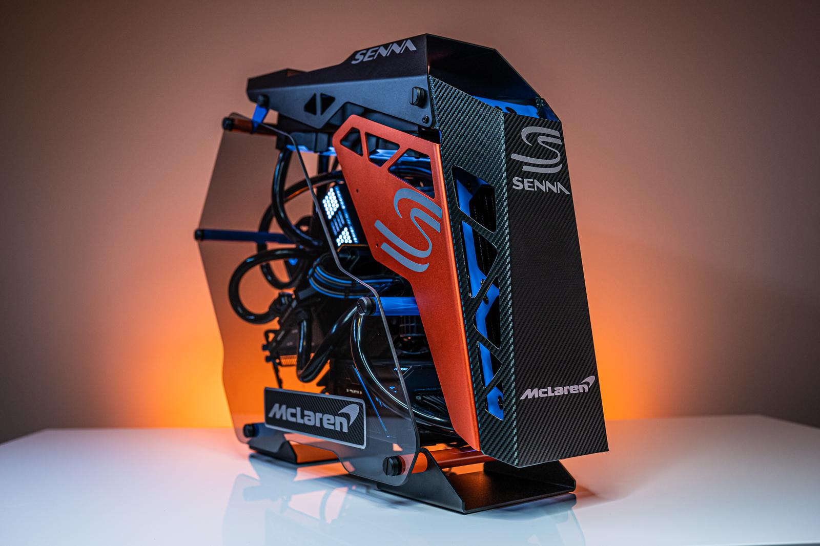 Robeytech挑選外形誇張的Cougar Conquer電競機箱,再以精心設計的貼紙改頭換面,例如面板改用碳纖維紋理、原裝橙色金屬側板加入麥拿侖Senna標誌,以及在機側貼上麥拿侖標誌。機箱搭載AMD Ryzen 7 3800X 8-Core處理器的MSI MPG X570 Gaming PRO Carbon WiFi ATX AM4底板,裝上32 GB Corsair Dominator Platinum RGB RRD4-3200快閃記憶體,代表它有著如麥拿侖Senna般的速度。