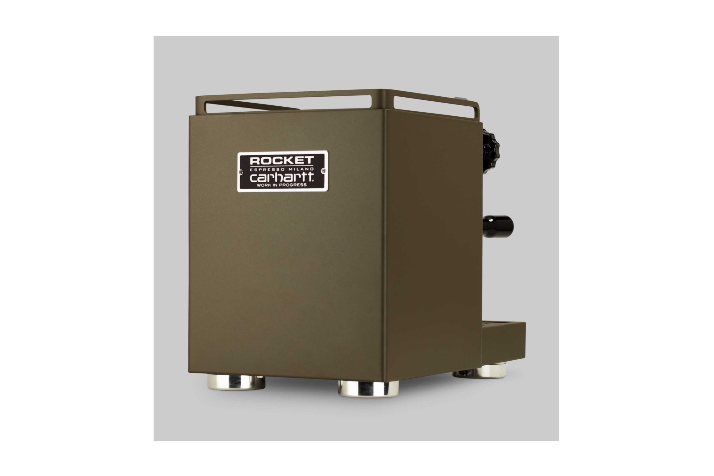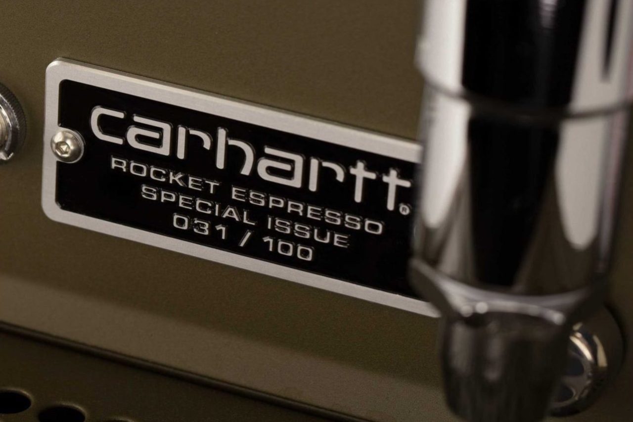 這台咖啡機以Rocket Espresso的半自動小型咖啡機Appartamento為基礎,煲煮容量為1.8公升,外表更換Carhartt專屬的軍綠色以配合軍事風格,其餘配件則保持以拋光不鏽鋼示人。它限量一百台,為突顯其珍貴身份,Rocket Espresso特意在機身鑲上刻有獨立序號的琺瑯徽章,是軍事風格或咖啡愛好者的最佳收藏品。