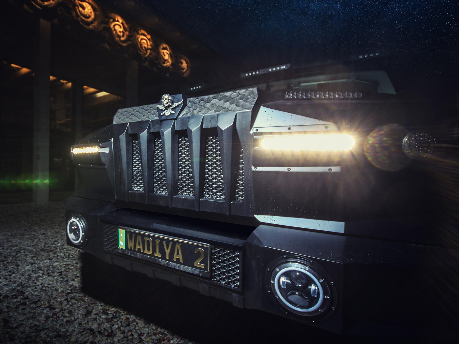 遠看已可感受到它的強悍,車身以碳纖維為主,再加入有防彈能力的Kevlar纖維,車頭格柵及裝甲般的棱角線條令外觀變得惡形惡相,加入骷髏頭裝飾,充滿暗黑邪氣。引擎換上Mercedes-Maybach GLS 600的4.0升雙增壓V8引擎及48伏特混能EQ Boost,可輸出558匹,廠方表示可加大馬力至1,000匹。