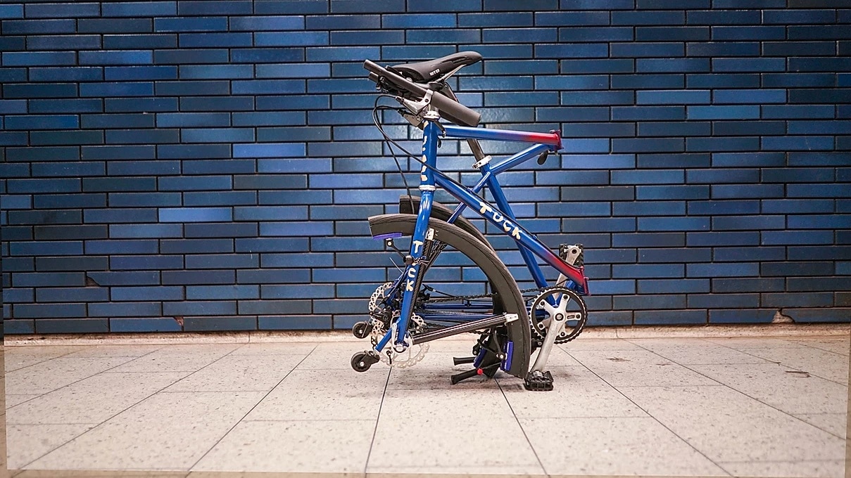 Tusk Bike的摺合車輪是公路單車常見的700C,直徑大約是29吋,所以它擁有正常全尺寸單車的優秀操控力。受惠於可分為三片組件並可同軸旋轉收摺的設計,令Tusk Bike摺合後體積只有61 x 83 x 37cm,與十六吋以下車輪的摺車不相伯仲,重量也只十四公斤。摺合過程只需內分鐘,設計師也細心地安裝了兩個滑輪方便推車,這絕對是史上最小的700C摺合單車。