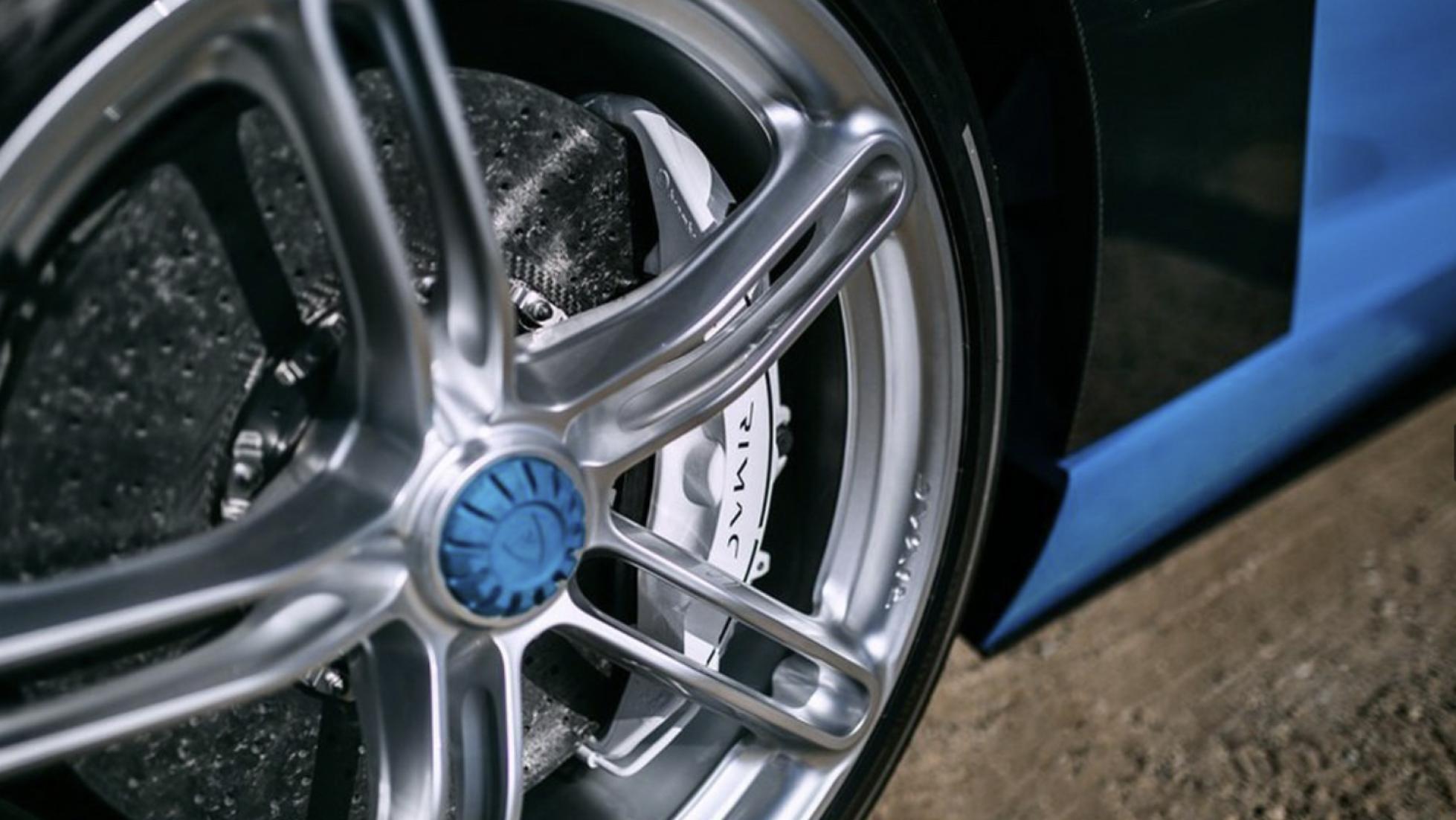 C_Two California Edition承傳了C_Two的強勁性能,但重點不在此,而是廠方為這特別版安排的細節。它以一身優美的天藍色車身示人,輪圈也是獨一無異的全新中空五輻款式。未夠特別?它在駕駛艙背面揹上兩支各6公升的香檳佳釀,當然少不了兩隻水晶香檳杯,以這方式來道賀車展,相信世上只此一架,這樣盛載香櫃也只有行車順滑瑰引擎震動的電動車才能勝任。當然,Rimac最後都要提點大家,切勿酒後駕駛。