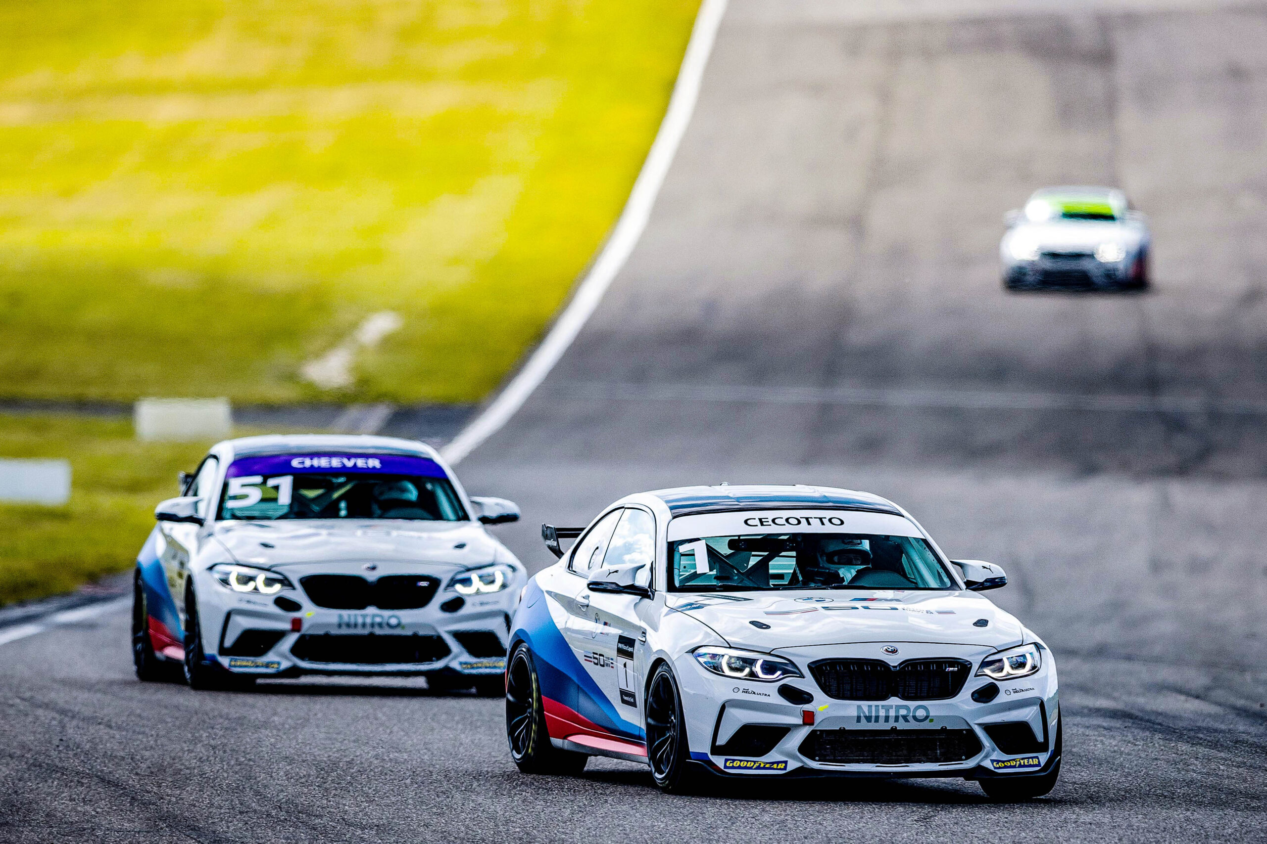 過去數十年來,不少車手使用寶馬賽車在不同賽事取得輝煌成就,這次寶馬M五十週年大慶,請他們重出江湖,不僅是示範式駕駛,還是正式比賽,全部統一使用目前寶馬在M2 Cup比賽中的標準戰車,365匹馬力的寶馬M2 CS Racing房車,經改裝為合規格的賽車,出戰為時三十分鐘的比賽。