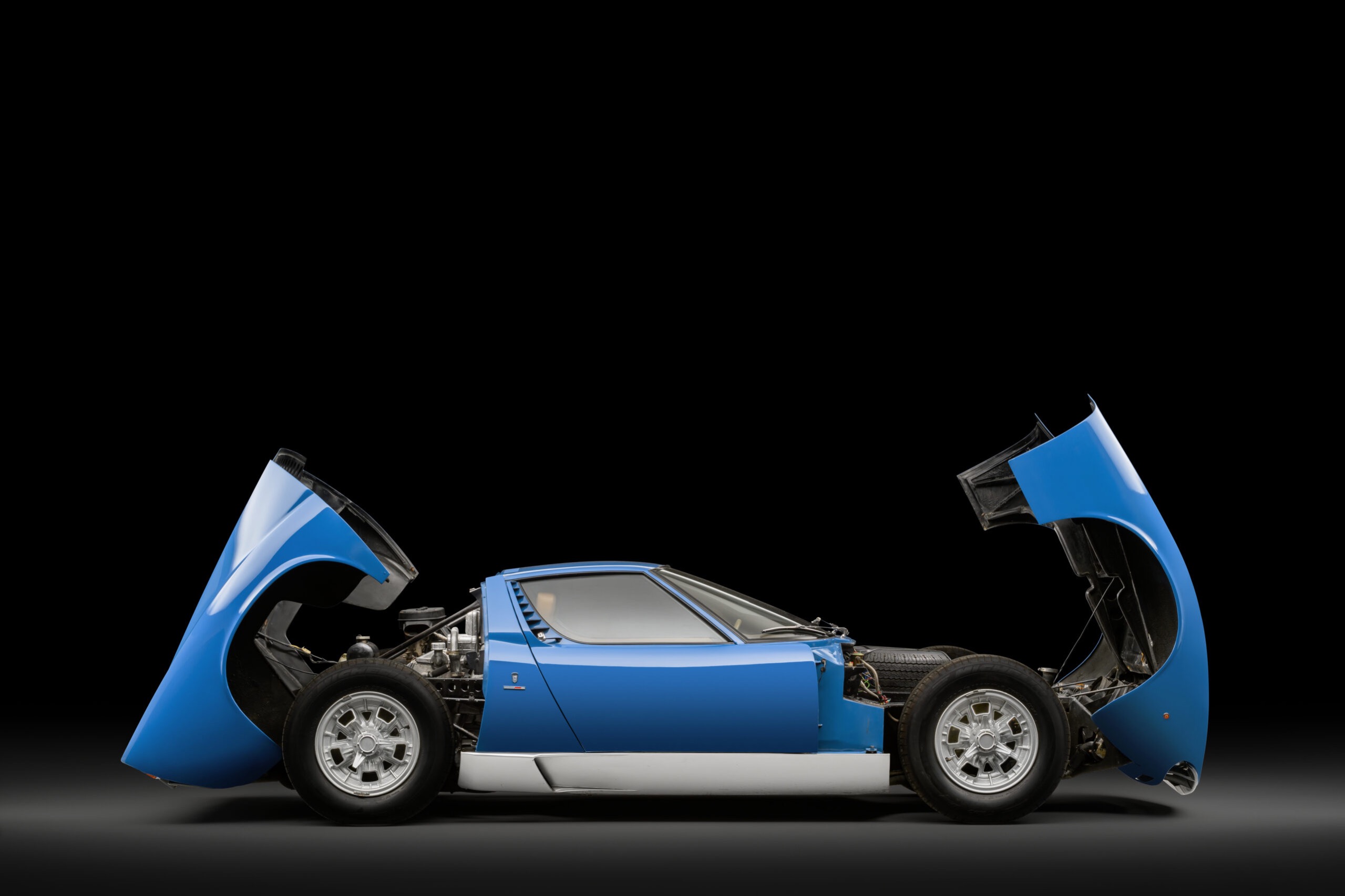 Miura P400在1966年意大利都靈車展首次公開亮相。它採用一台3,929cc橫置V12引擎,最大馬力350匹,峰值扭力355牛頓米,0-100km/h加速只需7秒,憑著其驚人的276km/h極速,成為當時速度最高的量產車。鑑於其高昂的定價,車廠在1966至1969年間只製造275部車,包括眼前於1968年出廠的這部天藍色的Bleu Miura。