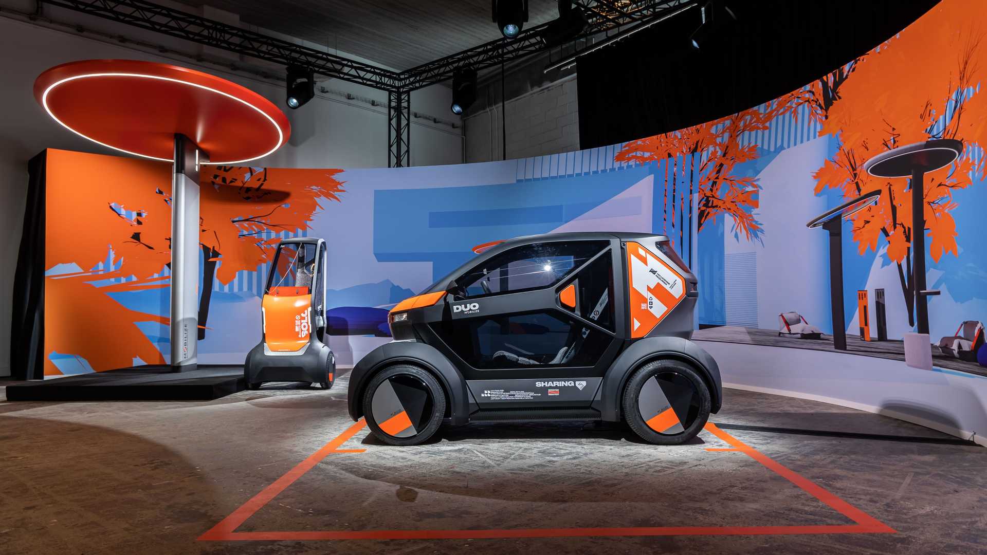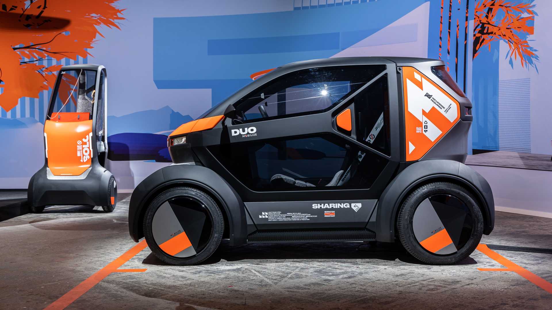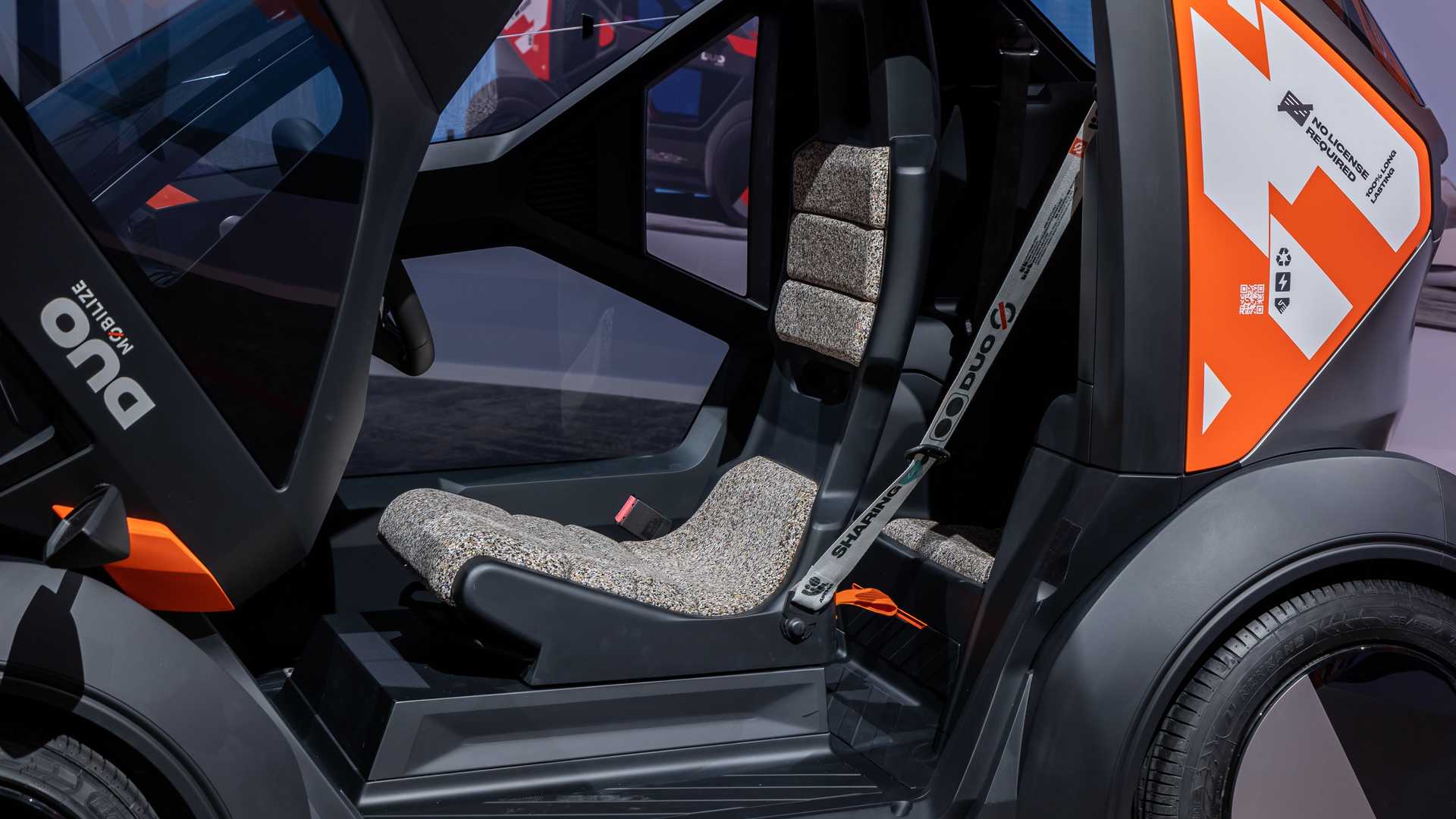 至於雙座位的Duo明顯是Twizy的正統後繼者,不但在外形充滿其神韻,為四輪、兩門、雙座位佈局,並沿用特色的剪刀式車門。Duo尺寸較Solo大得多,闊度為1.3米,接近Solo長度。兩個版本分別具有45km/h及80km/h極速,續航距離同樣為140km。只需以家用插頭作三小時快速充電,便可獲取達90km續航力。用家也可選擇另一個名為Bento的單座位版本,沿用與Duo相同的車體,但將後座改造成700公升容量的尾箱,更適合作商業用途。