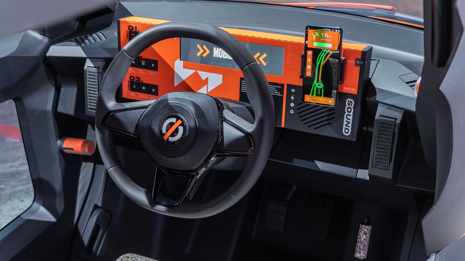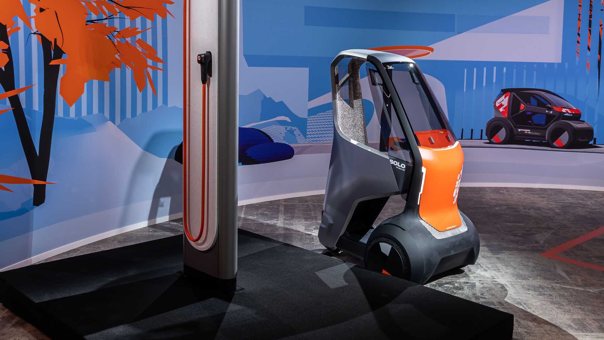 這部名為Solo的電動小車體積與電動輪椅相約,車長只有1.37米,闊度只有0.9米,共有三個車輪,顧名思義只有一個座位,只可於單邊上落。兩個較大的前輪為驅動輪,較小的單一後輪則用作轉向,憑著極小的迴旋半徑,就算在超巿的窄巷內都能夠靈活地游走。Solo的駕駛艙設計和儀錶版佈局一切從簡,液晶顯示屏上只有電量、車速等基本駕駛資訊,但亦設置手機無線充電座,方便用家在巿內利用手機作衛星導航。