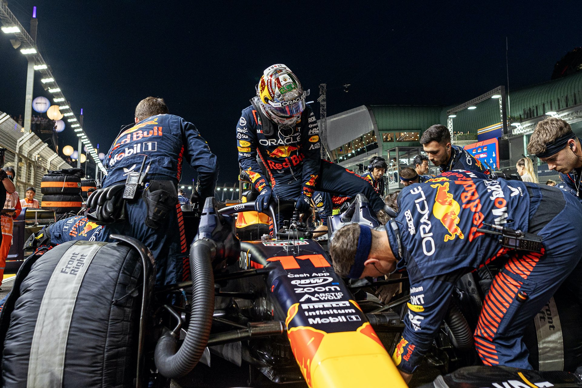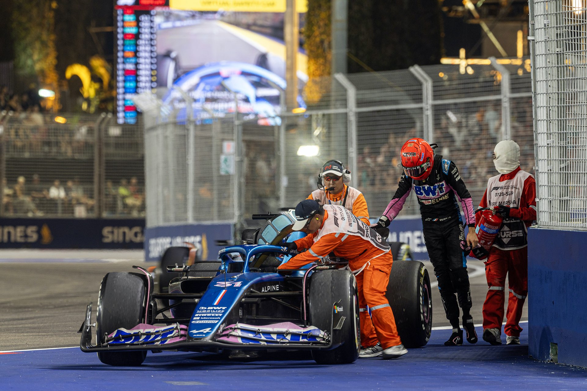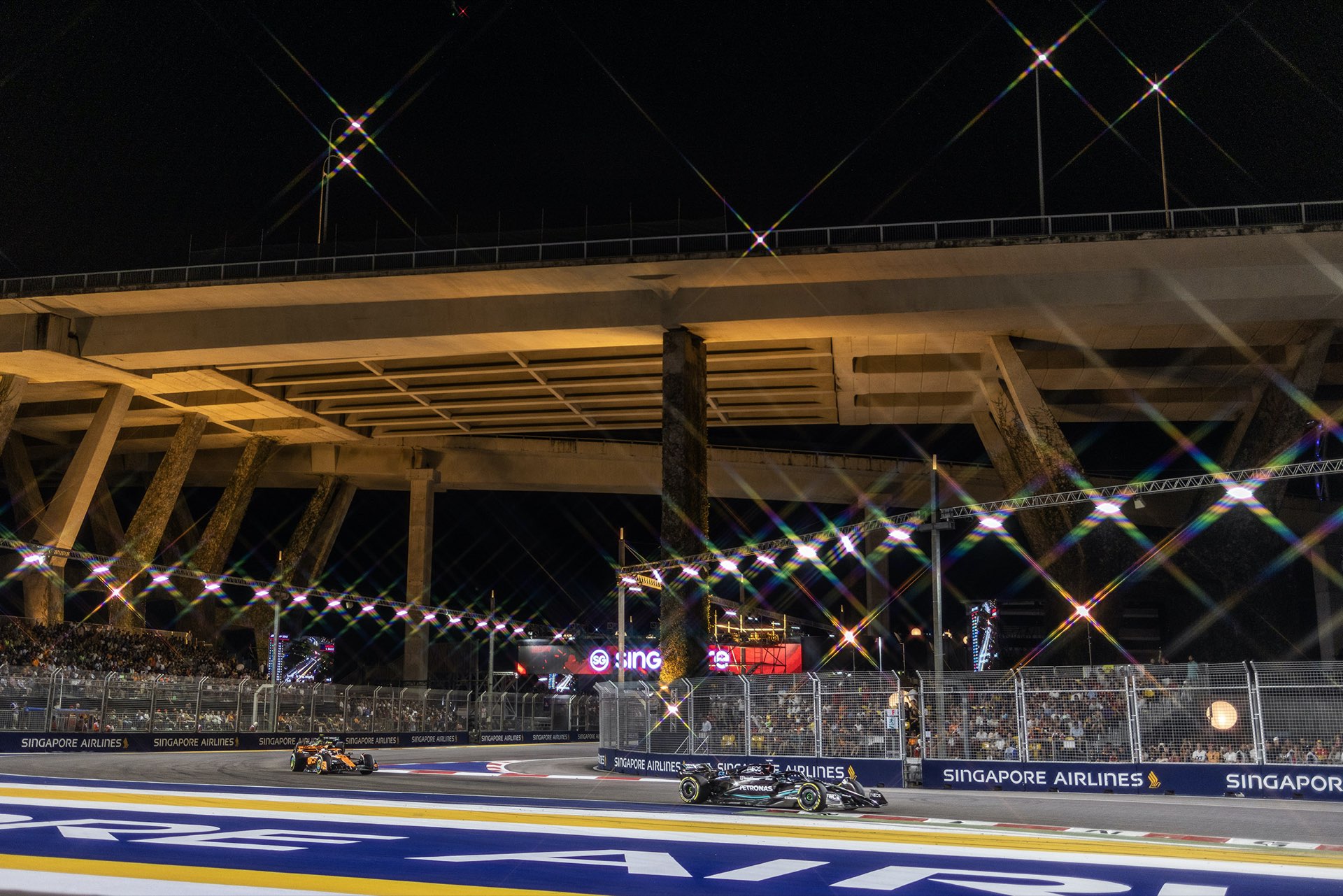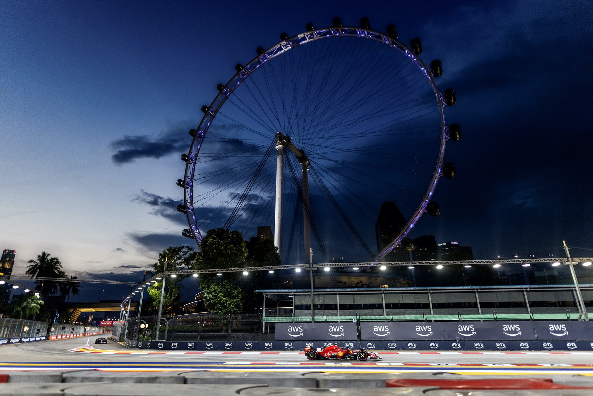 到最後一圈,第三位的羅素竟然操之過急撞車,喪失了得分機會,咸美頓升上第三,陸克萊第四,韋斯塔本全程苦戰下得第五。山斯在新加坡完美的表現為法拉利帶來今年第一個分站冠軍,也是今季唯一擊敗紅牛的車手。不過一站勝利並無損大局,紅牛與韋斯塔本相信皆可順利衛冕雙冠軍,新加坡的敗陣只是令韋斯塔本稱王的時間稍為押後而已。一週後轉戰日本鈴鹿,回到傳統賽道,紅牛的強勢能否「復常」, 是下一站令人關注的焦點。