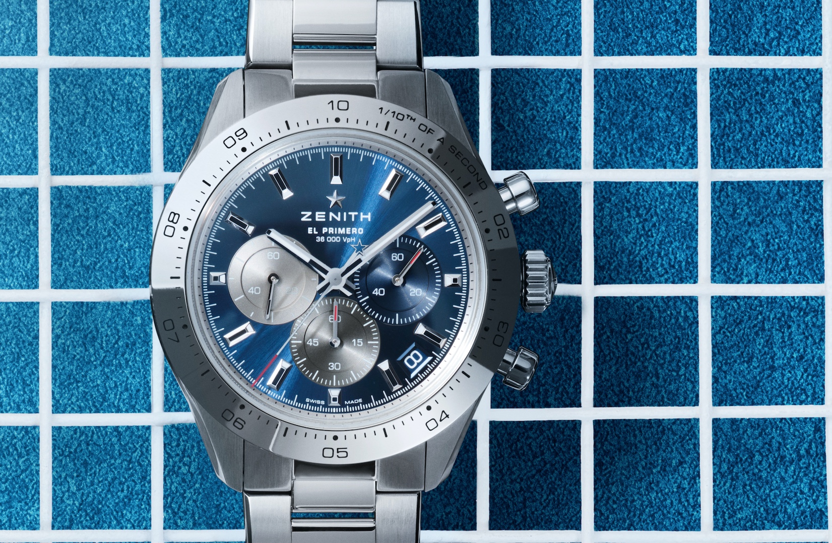 最新推出的Chronomaster Sport款式,參考品牌1980年代末推出的DeLuca和1990年代初推出的Rainbow款式,採用鐫刻上測速尺的拋光不鏽鋼錶圈 (而非常用的陶瓷錶圈),配搭藍色錶盤與三色副錶盤,外表俊朗非凡,同時貫徹Zenith實而不華的設計特色。另外,腕錶採用直徑41毫米的不鏽鋼錶殼,配搭磨菇形計時按鈕,與三節式不鏽鋼鏈帶,服膺實用主義風格,同時不失復古與懷舊風味。