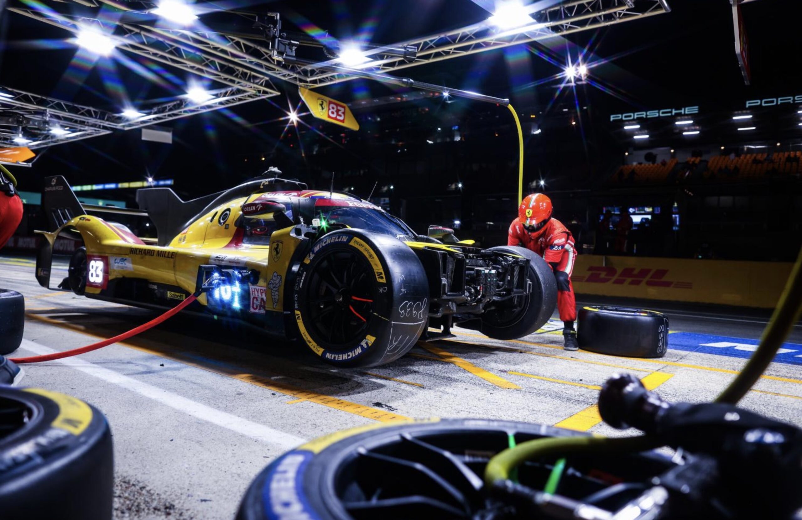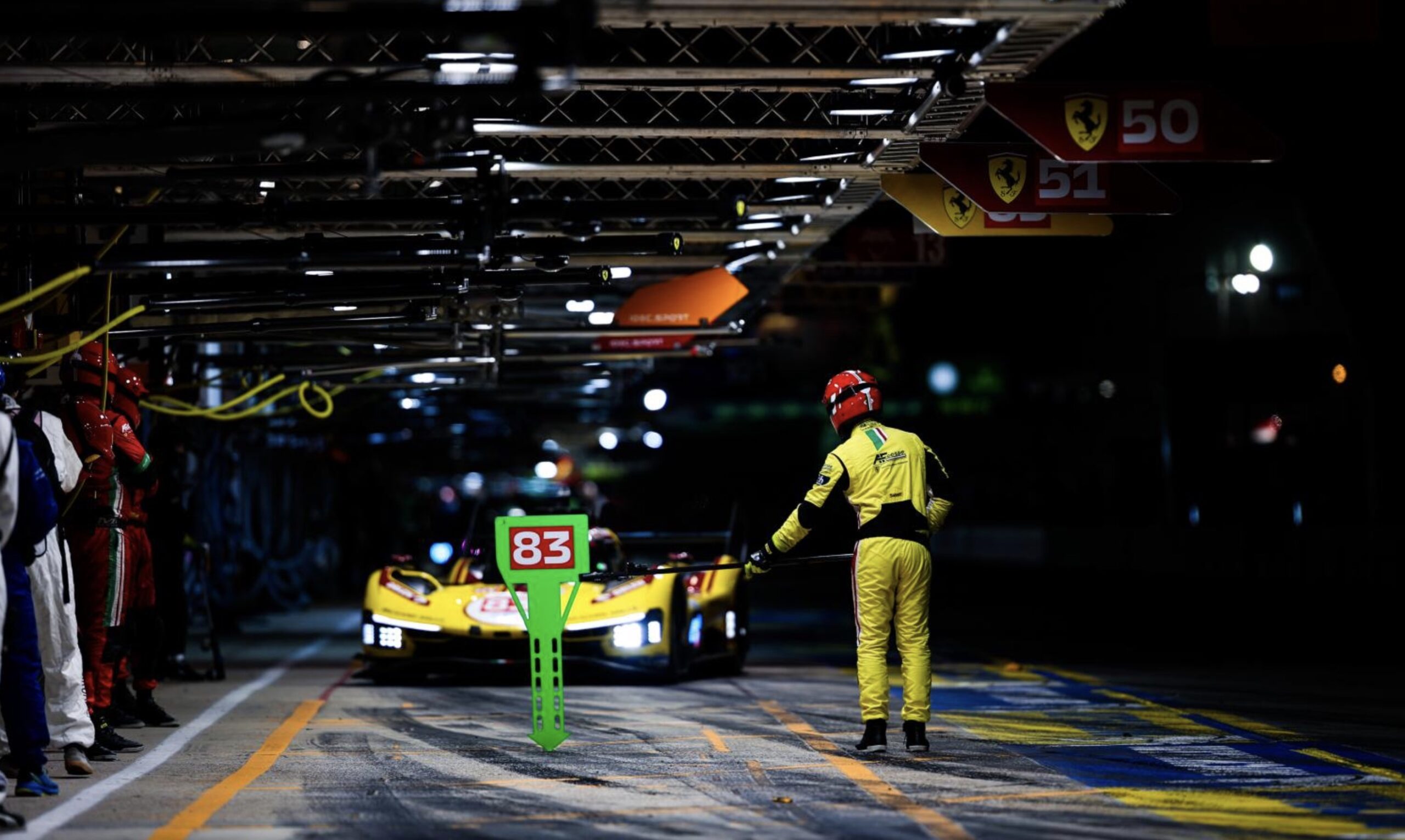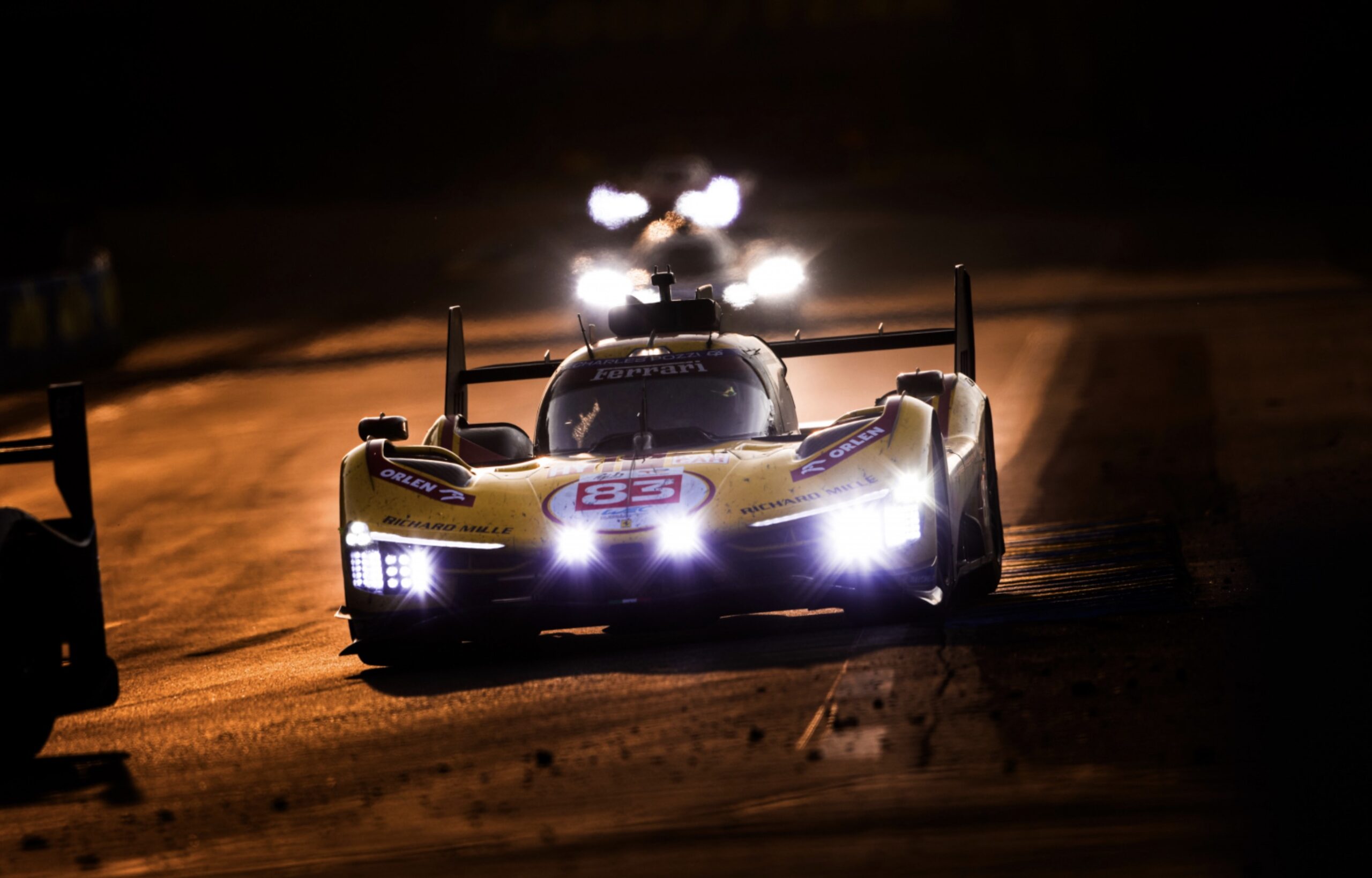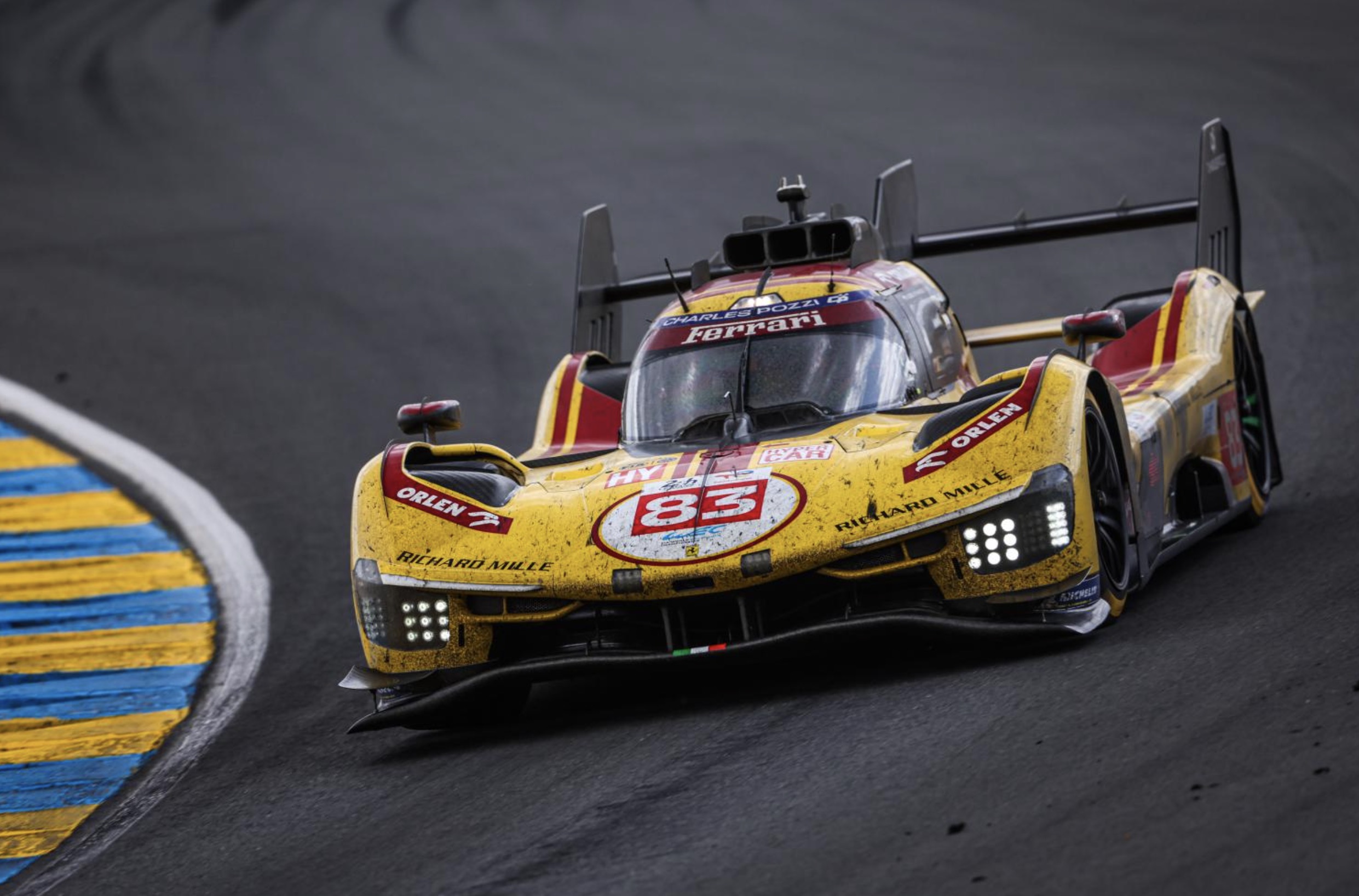 髤上83號黃色車身的本年度冠軍車,乃是法拉利的客戶車隊,參賽隊名為AF Corse而不是廠隊的Ferrari AF Corse。領軍車手古碧沙 (Robert Kubica),是史上首個奪得勒芒24小時耐力賽冠軍的波蘭車手。大家都記得,他在F1時於寶馬車隊成名,2007年的加拿大賽站,他遇上嚴重意外,期間承受的離心力高達75G,但他只是受了輕傷;一年後的加拿大站,他贏得F1生涯唯一一場分站勝利。來到2025年的F1加拿大分站前夕,他則成功在勒芒封王。為何說他是領軍人物?因為他是陣中唯一的鉑金級 (Platinum) 車手,而今仗比賽中,他在二十四小時中總共駕駛了十小時,佔總時間超過四成。