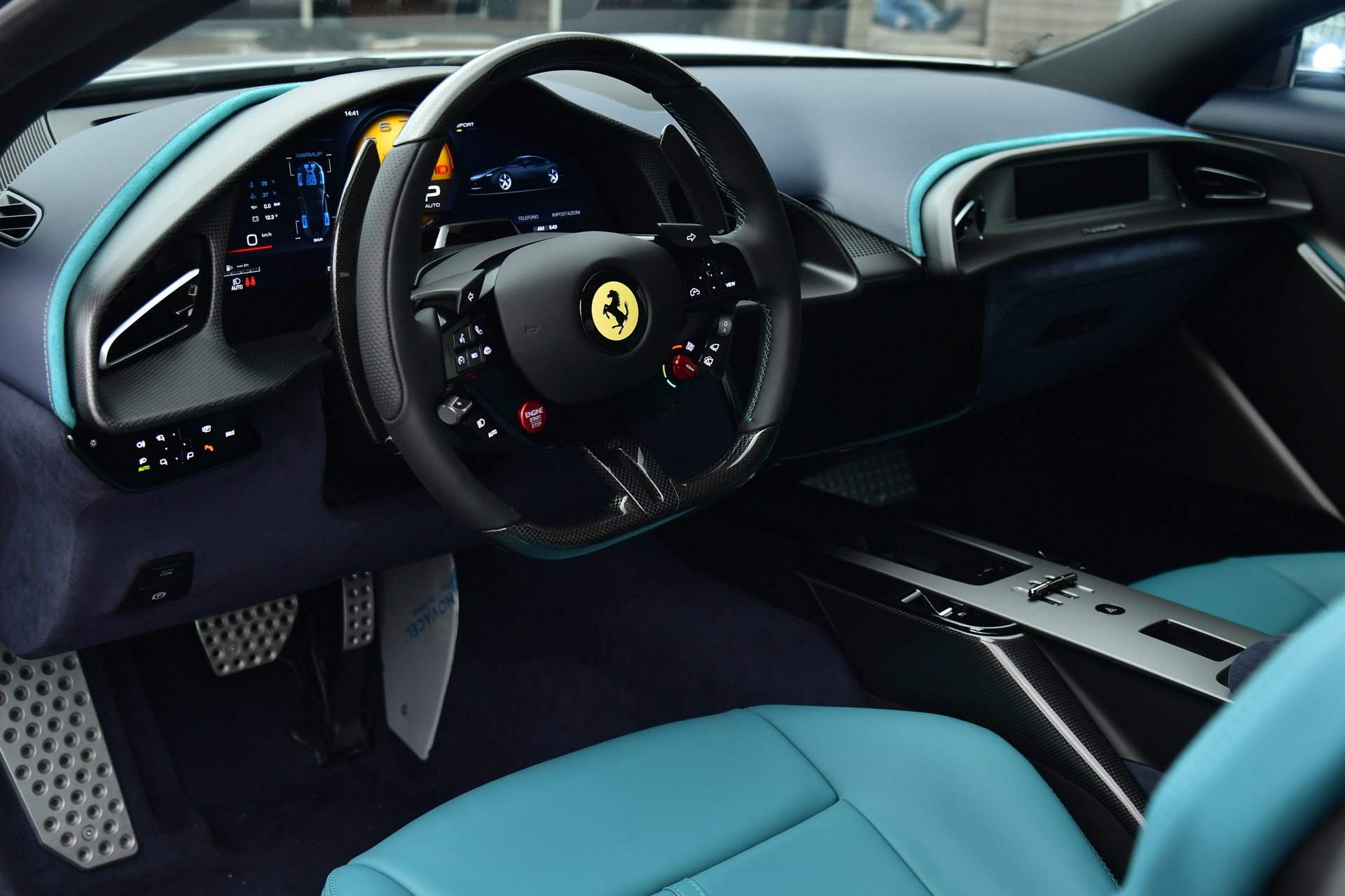 內廂方面,Amalfi與Roma的風格沒有大變,仍是近年一直在法拉利汽車上出現的「雙座艙」概念;「2 + 」式座位亦繼續保留下來。不過比較明顯的變化,就是控制台上的顯示屏幕,由原來8.8吋垂直設計,變作10.25吋橫向擺放。
