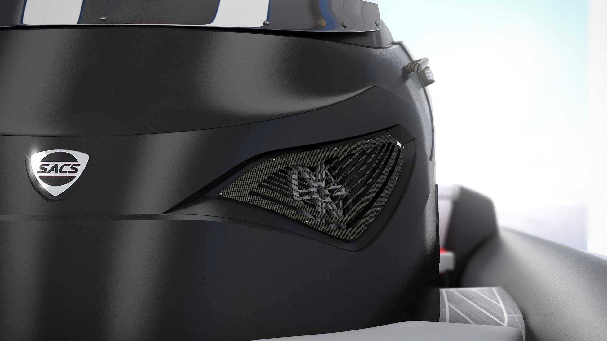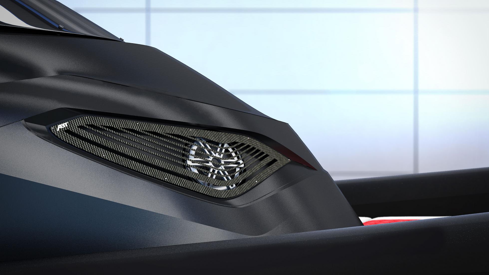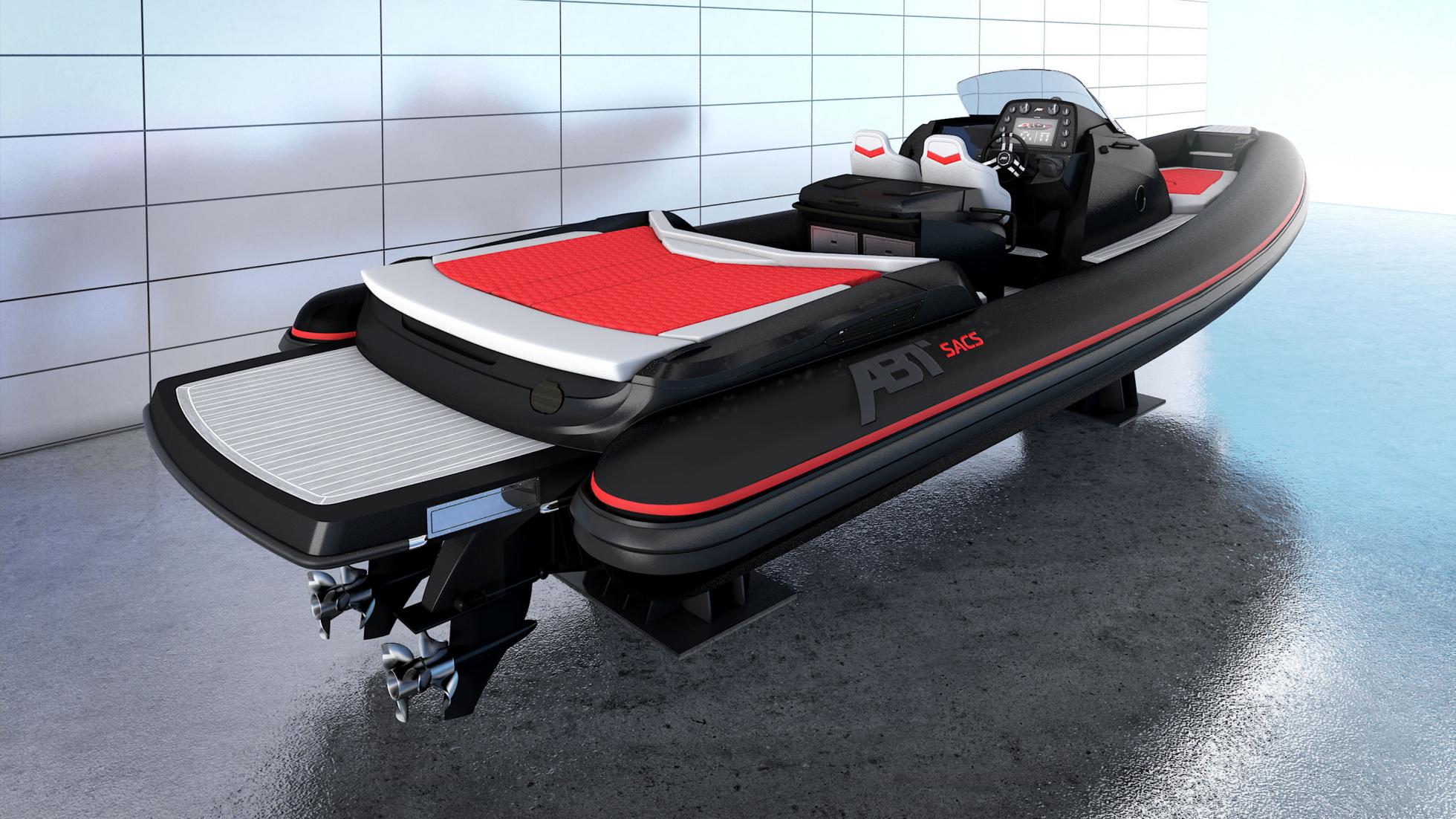 這架充滿神秘感的全黑充氣快艇,是以意大利遊艇專家SACS Marine的Strider 11為基礎,再加以ABT精心安排的升級而成。ABT為船身改配大量賽車級的CRP碳纖物料,而座位以及擺放行李的位置則以灰搭紅色的皮革包裹,船艙內更安裝了大型冰箱,設備非常豪華。可是,豪華只是一道配菜,從來ABT的作品也是以性能為主菜宴客。Strider 11的基礎型號本來配備兩台365匹的柴由引擎,合共已達730匹馬力輸出,而在ABT的「power」 performance升級之下,總馬力將提升至790匹,為它提供80節,即95km/h地面速度的極速表現,引擎更伴隨排氣聲音控制,有如陸地上的新型超跑。